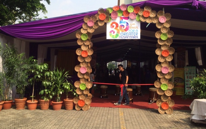 Untuk acara pameran kuliner industri Kreatif Indonesi dosen Desain Interior beserta mahasiswa mendekor untuk acara istimewa Dalam rangka ulang tahun Bina Nusantara University ke 35