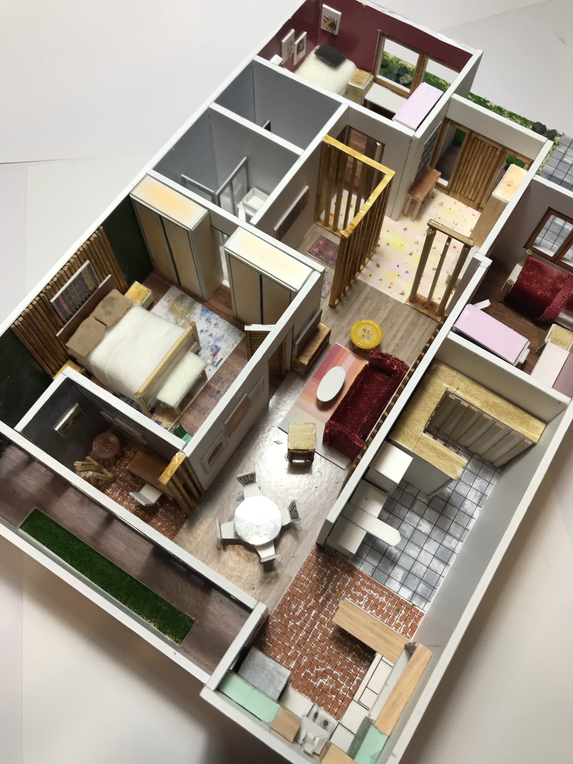 Rumah ini didesain untuk 4 anggota keluarga yaitu Ayah, Ibu, dan 2 orang anak perempuan. Konsep rumah ini adalah mid century modern dengan pertimbangan bahwa design rumah harus natural dan tetap sederhana, warna yang dipakai juga warna- warna yang hangat dan natural seperti warna kayu, olive green, dan terracotta. Local Content yang dipilih berasal dari Sumba karena cocok dengan konsep rumah ini, warna- warna yang terdapat pada kain sumba merupakan warna yang alami, pernak-pernik lainnya juga berasal dari pewarnaan yang alami sehingga mampu menciptakan kesan alami namun tetap eksotis. Kain sumba saya berikan pada foyer, ruang sholat, dan ruang kamar tidur utama