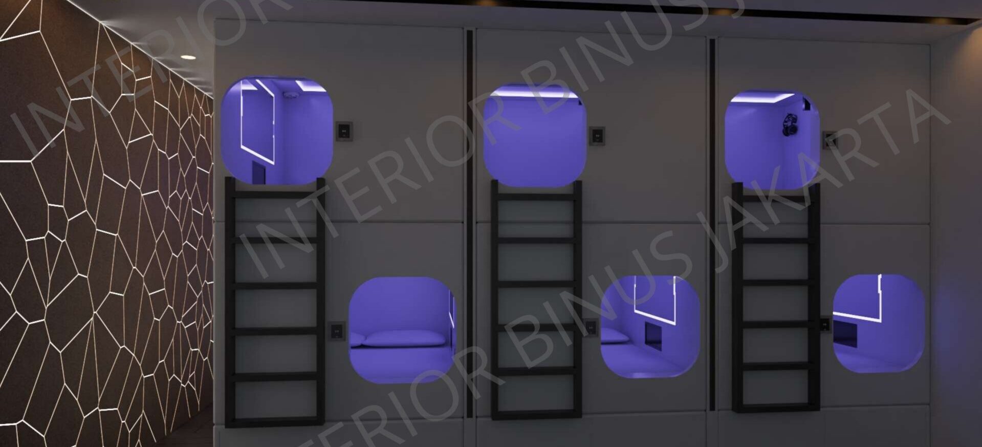 Terdapat beberapa hotel kapsul yang masih belum mengoptimalkan sirkulasi, pencahayaan, dan ergonomi pada interior hotel kapsul yang dimana dapat mengganggu kenyamanan tamu hotel kapsul sehingga beberapa individu memiliki tingkat kenyamanan yang rendah dan memiliki kesan yang kurang baik bagi hotel kapsul. Dengan konsep yang diterapkan ada hotel kapsul tersebut, perancangan akustik ruang yang tinggi dengan bahan penyerap suara serta ramah lingkungan seperti material cork dapat meningkatkan kualitas akustik ruang dan efisiensi tamu pada hotel kapsul berdasarkan aktivitas yang dilakukan pada setiap ruangan dan dapat mengedukasi masyarakat mengenai sustainability.