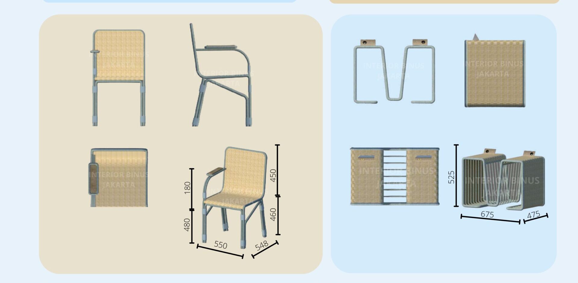 Perancangan Furniture dan aksesoris ini dibuat untuk memenuhi kebutuhan pengunjung klinik fisioterapi pada ruang tunggu untuk mengakomodir kebutuhan berdasarkan pengelompokan usia dan user behavior, yaitu anak anak, dewasa dan lansia yang aktivitas saat menunggunya adalah duduk, membaca majalah, mengisi baterai telepon genggam, meletakan barang sehingga di buat kursi, partisi, meja beserta tempat majalah dan stop kontak di atas meja sehingga menjawab kebutuhan pengunjug saat berada di ruang tunggu klinik fisioterapi.