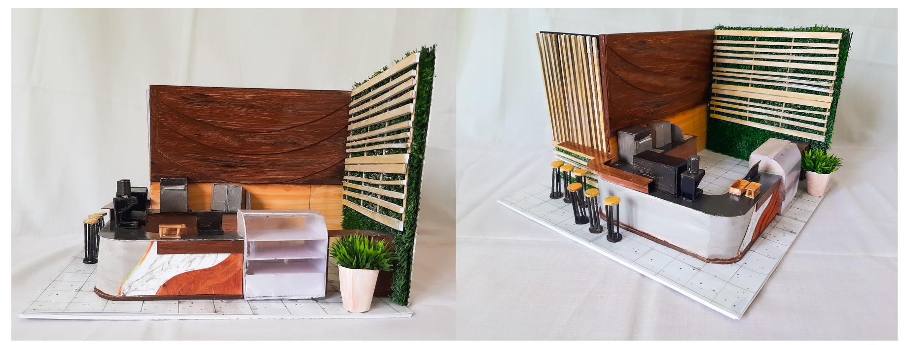 Dalam mendesign coffee shop ini, saya menggunakan konsep cafe yang mengambil tema konsep dari alam yang disesuaikan dengan penggunaan kopi dari coffee shop ini yang diambil dari sebagian besar wilayah Indonesia yang terkenal dengan keindahan alamnya. Alam yang kita kenal mempunyai bentuk yang sebagian besar tidak geometris / mempunyai bentuk natural dan organik. Dataran tinggi / pegunungan misalnya memiliki bentuk yang berlengkung-lengkung. Bentuk inilah yang menjadi dasar penggunaan elemen-elemen lengkung pada beberapa bagian dari cafe ini seperti pada desain lantai, dinding, dan juga pada ceiling nya. Tak lupa, perbedaan ketinggian pada lantai dan ceiling juga ditambahkan sebagai penguat konsep alam ini. Selain itu juga menggunakan beberapa tanaman interior sebagai dekorasi coffee shop ini yang dapat menambahkan aksen Nature itu sendiri.