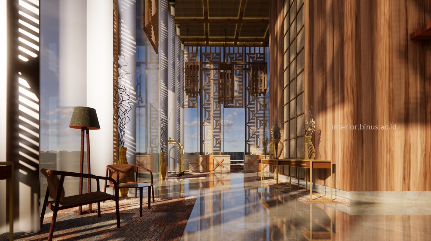 Rangku Alu Telatah Kebahagiaan dar Tenggara memiliki arti bahwa tarian Rangku Alu sebagai tanda kebahagiaan dari tenggara (Nusa Tenggara Timur). Pemilihan design statement tersebut terinspirasi dari Rangku Alu yang merupakan salah satu kebudayaan tari dari daerah Manggarai, Nusa Tenggara Timur. Rangku Alu adalah sebuah tarian yang diadaptasi dari permainan. Tarian ini dilakukan dengan cara melompati batang bambu yang dihentakkan. Tarian tersebut dilakukan sebagai selebrasi untuk merayakan musim panen dan bentuk rasa syukur atas hasil panen yang didapatkan oleh masyarakat. Karena rata-rata masyarakat NTT sendiri bekerja sebagai petani yang juga memiliki sifat ramah dan gotong royong satu sama lain. Sehingga dari konsep tersebut dapat memberikan kesan bahwa Rangku Alu dapat memberikan suasana ruangan menjadi hangat, bahagia dan menyenangkan bagi para pengguna yang berada di dalamnya.