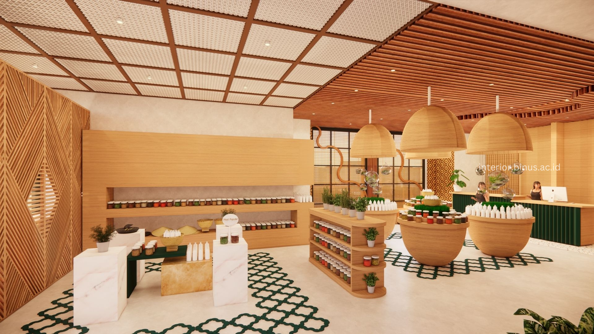 Interior design of Jamu Traditional Center In Jakarta, began with the development of Jamu in Indonesia, which began to be known again during this Covid-19 pandemic. However, the lack of a place for connoisseurs of Jamu and the lack of education that will be given to young people today who lack information about the history and development of Jamu in Indonesia that must be preserved. These activities require a place that can educate and provide a place for Jamu lovers to drink and learn about herbal medicine. By adding facilities that can meet the needs of visitors, and besides providing a very interesting design concept.