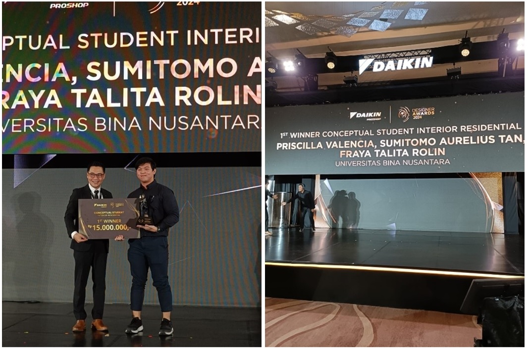 Salah satu kelompok mahasiswa dari BINUS University, yang terdiri dari Priscilla Valencia, Fraya Talita Rolin, dan Sumitomo Aurelius Tan, berhasil meraih posisi Top 5 Finalist dalam kategori Conceptual Interior Design Residential Student. Prestasi ini membawa mereka ke tahap presentasi langsung yang diadakan pada 22 Oktober 2024 di Menara Astra, kantor pusat Daikin Indonesia.