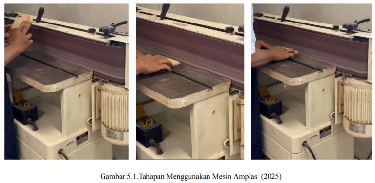 Dikarenakan kurangnya presisi ukuran yang sama dengan plywood yang dipotong oleh peserta mahasiswa dengan plywood yang telah disediakan dari WF-Anggrek, bagian tepi plywood yang tidak sama rata setelah direkatkan, perlu melalui proses amplas lagi dengan menggunakan edge sander atau mesin amplas khusus untuk tepian kayu agar halus dan rapi seperti gambar di bawah ini.