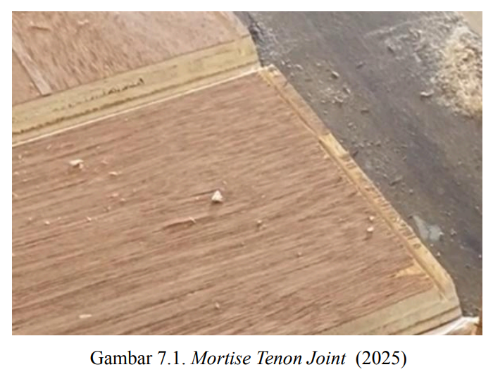 Tahap selanjutnya melibatkan penggunaan mesin miter saw kembali untuk membentuk sambungan yang lebih kuat yaitu mortise tenon joint. Dalam membentuk sambungan ini, memerlukan potongan 1-2 mm dari bagian tepi seperti gambar di bawah ini.