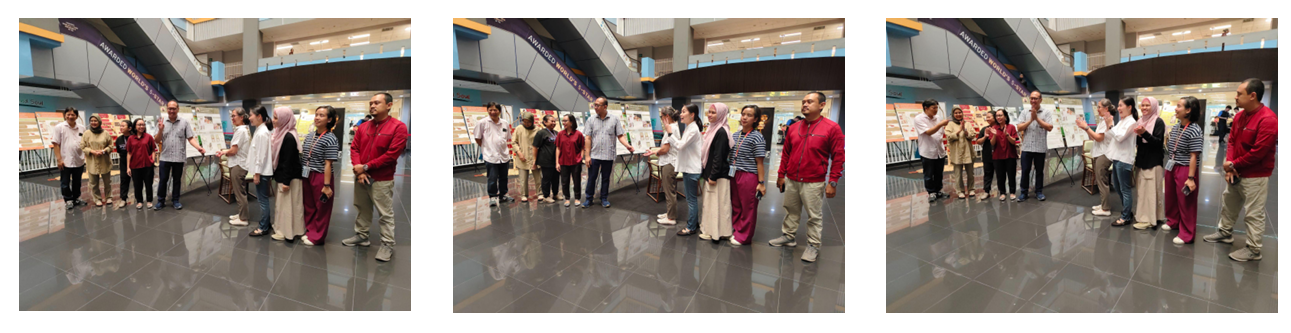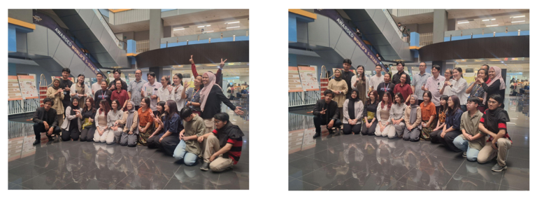 Keistimewaan pameran ini juga terlihat dari kehadiran pengunjung yang luas, termasuk mahasiswa lintas jurusan dan dosen dari berbagai bidang, yang menunjukkan bahwa desain furniture dan aksesoris interior tidak hanya menarik bagi kalangan desainer saja, tapi juga menginspirasi banyak pihak di lingkungan akademik. Setelah rangkaian acara resmi selesai, sesi dokumentasi bersama menjadi momen yang tak kalah penting. Seluruh panitia, mahasiswa DF 3: Office, serta para dosen dan tamu undangan berkumpul untuk mengabadikan kebersamaan dalam foto bersama. Tawa, senyuman, dan ekspresi bangga mewarnai setiap jepretan kamera menjadi simbol dari kerja keras, kolaborasi, dan semangat yang telah menyatukan semua pihak dalam proses pameran ini. Dokumentasi ini bukan hanya sekadar foto kenangan, tetapi juga bukti nyata dari semangat komunitas desain yang saling mendukung dan merayakan pencapaian bersama.