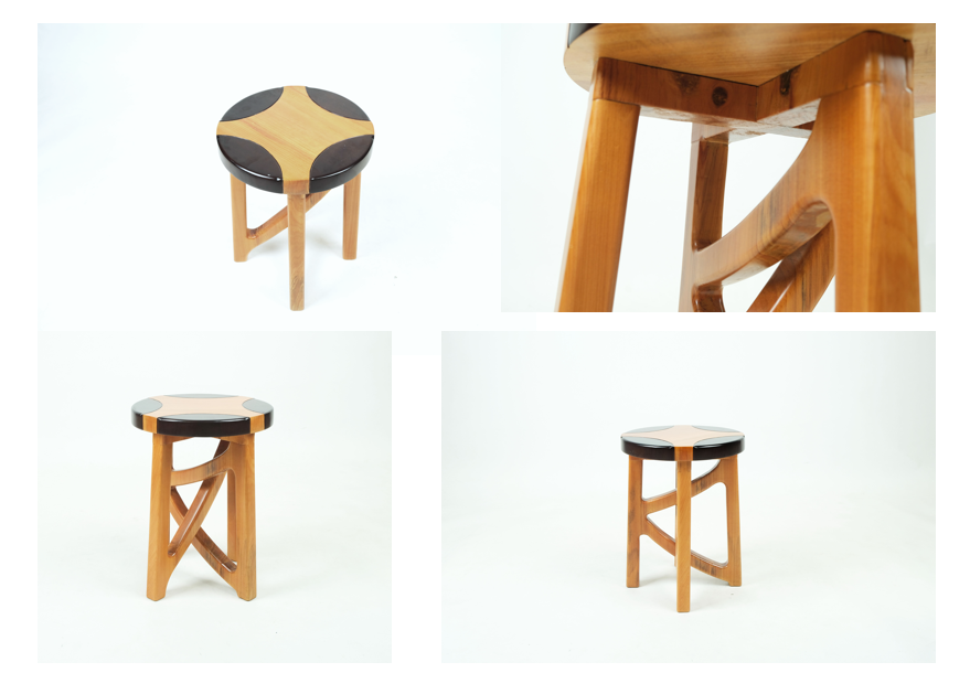 Saya memilih film “The Lord of the Rings” sebagai inspirasi dari konsep desain bangku (stool) saya karena film ini memiliki estetika yang sangat khas dan kaya akan detail visual, terutama dalam elemen film yang dipenuhi oleh nuansa alam. Salah satu daya tarik utama dalam dunia Middle-earth adalah bagaimana arsitektur Elvish seperti di Rivendell dan Lothlórien yang terintegrasi secara harmonis dengan alam sekitarnya. Oleh karena itu, kaki bangku ini saya rancang menyerupai cabang pohon yang melengkung dan bercabang. Sementara itu, bagian alas duduknya terinspirasi dari bentuk jendela rumah Hobbit yang bundar, dengan tambahan pola ukiran organik yang menyerupai dedaunan atau simbol runik. Detail finishing seperti warna kayu alami dan coating melamine juga saya gunakan untuk memperkuat kesan handcrafted, seolah-olah bangku ini dibuat dengan ketelatenan tangan para Elf.