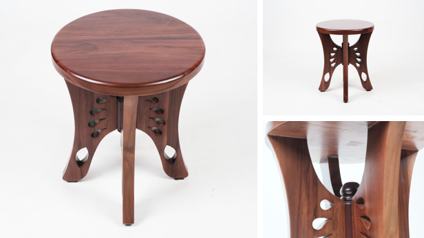 Konsep stool ini terinspirasi dari keunikan dan filosofi kupu-kupu, yang menjadikan alasan serta inspirasi utama untuk ingin melestarikan daya pikatnya. Stool ini erat kaitannya dengan anggota tubuh dari kupu kupu seperti saat sayap kupu-kupu yang terbuka seperti sedang memberikan kesan kupu kupu yang mengepakkan sayapnya. Sayapnya divisualisasikan dalam struktur kaki yang menyebar simetris, menciptakan kesan ringan namun tetap stabil. Sementara itu, bagian tubuh perut untuk tengah stool—tempat joint disatukan—dibentuk lonjong menyerupai tubuh kupu-kupu, berfungsi sebagai poros atau pusat keseimbangan. Stool ini menggunakan palet warna coklat yang digunakan cenderung soft dan natural, merepresentasikan alami dan organik dari kupu kupu. Dengan demikian, stool ini akan dibuat tidak hanya cantik dari luar tapi juga fungsionalitas.