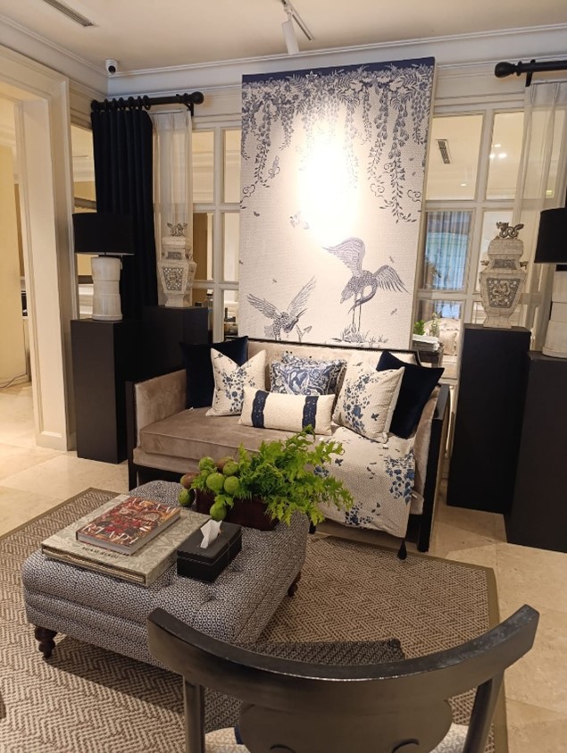 Pengaplikasian material Kain motif Kelengan pada Living Room (Christianto R, 2025)