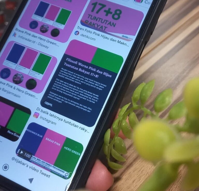 Kehadiran kombinasi warna merah muda (pink), hijau, dan biru memunculkan pemaknaan baru saat sebagian besar masyarakat digital secara tidak tertulis sepakat menggunakan kombinasi warna dalam pergerakan. Hal ini terlihat dari masifnya penggunaan kombinasi warna tersebut pada foto profil, konten poster, sampai fitur reels dan story di berbagai platform. Apapun kontennya, apapun isi dari materi digitalnya, dua sampai tiga warna tersebut hadir sebagai pernyataan sikap. Namun apakah penggunaan warna-warna tersebut dapat dijelaskan, baik secara pemaknaan (semiotika) maupun secara teoritis?