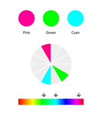 Pada umumnya, kombinasi warna yang diaplikasikan pada karya desain mengacu pada roda warna sebagai bantuan perancang memadu padankan makna pada simbol warna[4]. Panduan ini menjadi penting, khususnya untuk kebutuhan representasi, seperti makna yang berupa suasana yang ingin ditimbulkan dari kombinasi warna tersebut, Roda warna menjelaskan spektrum warna dan membaginya menjadi 12 bagian yang kemudian dapat dikategorikan sebagai kelompok warna hangat (spektrum merah ke kuning) dan kelompok warna dinging (spektrum biru ke hijau). Masing-masing irisan warna juga dapat menghasilkan turunan warna lainnya sehingga ragam warna menjadi sangat variatif.